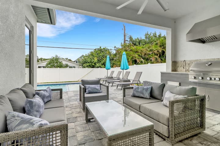 العائلة وحمام السباحة والشاطئ والتسوق