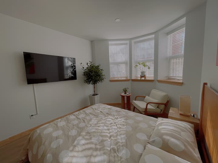 الإيجار لغرفة النوم الأمامية مع حمامك الخاص. غرفة المعيشة المشتركة والمطبخ. الغسالة والمجفف في الشقة. .