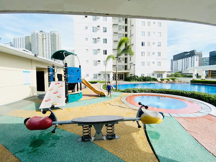 شقة بغرفتي نوم مع واي فاي وحمام سباحة ومنطقة لعب للأطفال