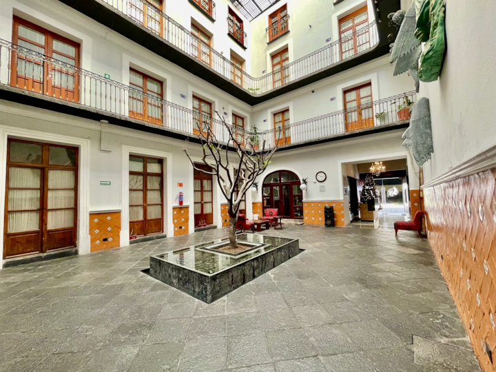 يقدم هذا الفندق غرفاً مزودة بوسائل راحة عصرية، ويقع في وسط البلدة القديمة في بويبلا، ويحيط به المباني ذات الطراز الاستعماري والأماكن ذات الأهمية، مثل كاتدرائية بويبلا، كما أن فندق بويبلا بلازا يقع على مقربة من متاجر التحف والحياة الليلية النابضة بالحياة في كاليجون دي لوس سابوس، كما توجد في المنطقة المجاورة أيضاً العديد من المتاحف والمباني الاستعمارية.