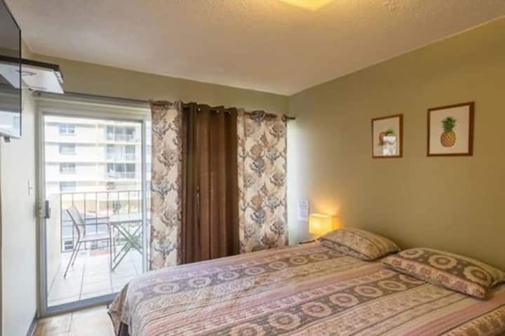 شقة بغرفة نوم كاملة في شاطئ وايكيكي على بعد دقيقتين!