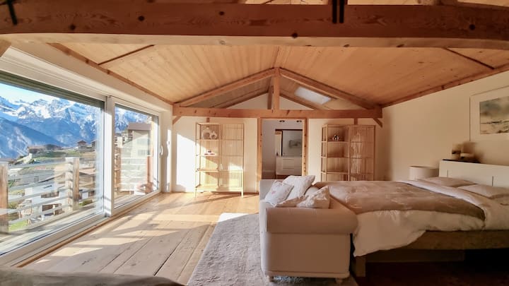 غرفة عائلية في جبال الألب السويسرية مع مناظر خلابة