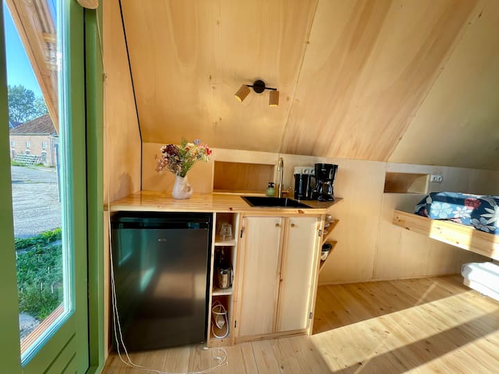 دور علوي مريح مع سرير مزدوج جيد. ’T Pekelhuis هو كوخ مكون من 6 أشخاص مع غرفة نوم إضافية في الطابق السفلي وفي منطقة المعيشة سرير أريكة مريح لشخصين. لا يحتوي T Winkeltje على غرفة نوم منفصلة ولكن أيضًا سرير أريكة مزدوج لطيف في الطابق السفلي. في الطابق السفلي، تحتوي جميع الأكواخ على مطبخ مجهز تجهيزًا جيدًا وغرفة معيشة لطيفة مع إطلالة على بستاننا الذي يعود إلى قرون. هناك تدفئة تحت الأرضية ومنطقة طعام مريحة ويتم الانتهاء من كل شيء وتزيينه بالكثير من الحب. على الشرفة، يمكنك الاستمتاع بشمس الصباح الرائعة والمشي عبر أبواب الحديقة معًا في أي وقت من الأوقات. يحتوي كلا الكوخين على حمام في الطابق السفلي مع دش مطري رائع ومرحاض ومغسلة.