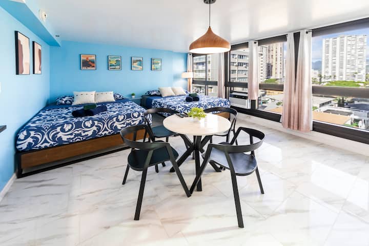 #1 دقيقة إلى الشاطئ في استوديو وايكيكي مع إطلالة دايموند هيد!