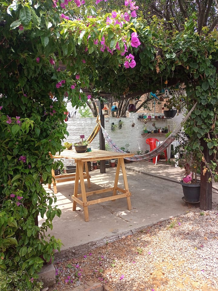 ما الذي يجعل مسكني مميزًا: حمام سباحة ساخن والعديد من النباتات .