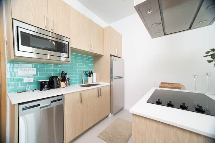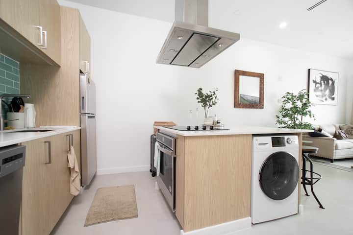 غرفة نوم واحدة واسعة | إمكانية الوصول إلى حمام السباحة + إطلالات على السطح + غسالة/ناشف
