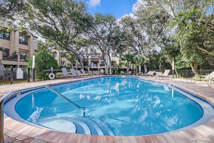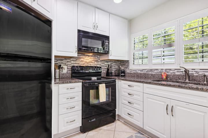 على بعد دقيقتين سيرًا على الأقدام عن الشاطئ! مناسب للكلاب! إطلالة على حمام السباحة