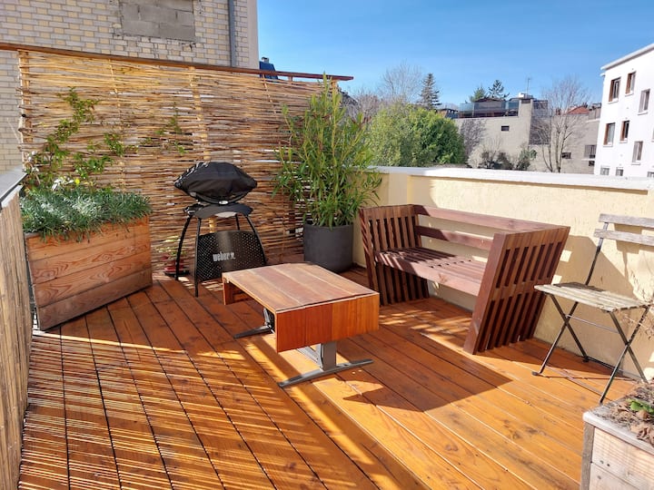 شقة على بعد 2/5 دقائق سيرًا على الأقدام إلى المترو والتراس