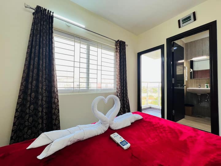 إطلالة خضراء 1bhk+AC+شرفة+تلفزيون