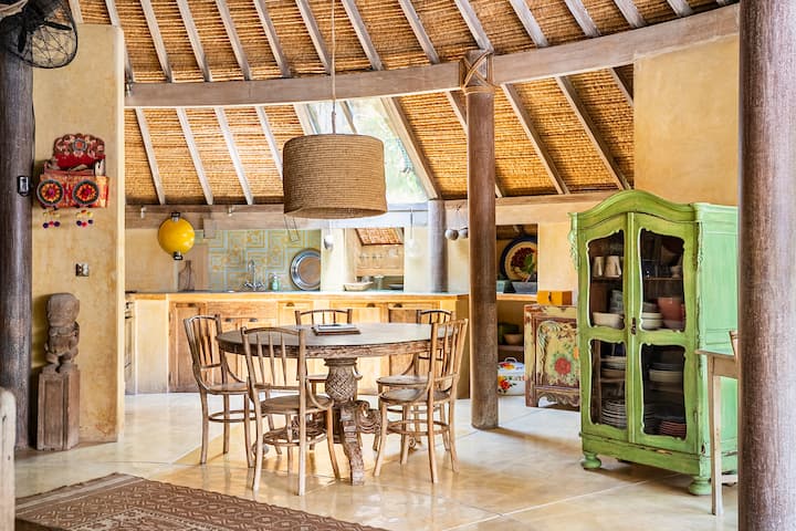 البيت المستدير مع حديقة كبيرة وحمام سباحة - يُمكنك السير إلى الشاطئ