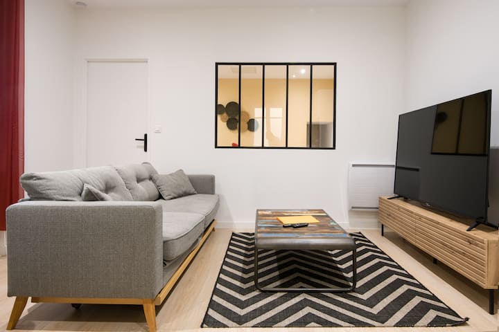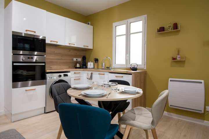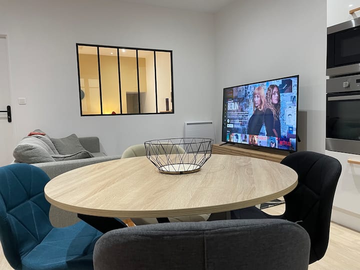 تم تجديد مكان الإقامة الذي أقدمه بالكامل، وهو مشروع حقيقي من القلب سمح لي بالجمع بين شغفين: التجديد والديكور.