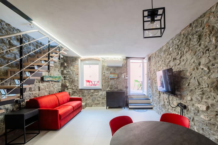 بيت حجري مع حديقة على بعد خطوتين من البحر