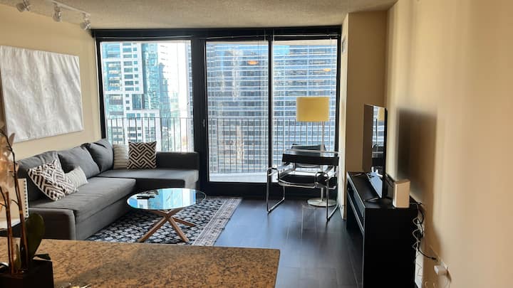 شقة فاخرة بغرفة نوم واحدة وشرفة في وسط مدينة شيكاغو