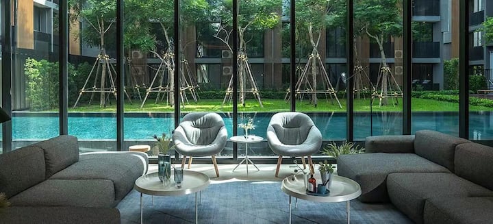 شقة NA فاخرة جديدة بحمام سباحة في وسط مدينة بانكوك / محطة BTS / مركز تسوق / خدمة نقل مجانية من المطار