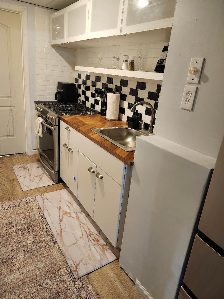 شقة استوديو أنيقة مع سرير بحجم كينج وموقف سيارات