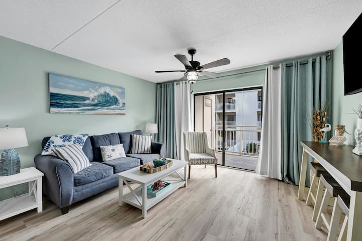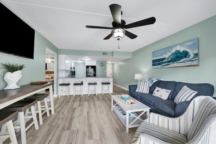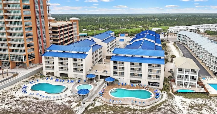 مرحبًا بك في أكوا بريز الواقعة في مجمع شوجر بيتش الواقع مباشرة على الشاطئ! نحن نحب أن مجمع شوجر بيتش تم تصميمه مع وضع الأسرة في الاعتبار. يحتوي على ما مجموعه 4 مسابح! نعم، أربعة! اثنان من حمامات السباحة على واجهة الشاطئ، بالإضافة إلى حمام سباحة للأطفال حيث يمكن للصغار اللعب. يتم توفير حمامات بجانب حمام السباحة لراحتك! يتم تسخين أحد حمامات السباحة لدينا إلى 85 درجة للأشهر الباردة. حمام السباحة الرابع هو حمام السباحة في الفناء! تطل شرفتنا على حمام السباحة في الفناء، وهي مثالية لمراقبة عائلتك من أعلى الغرفة. هذا ليس كل شيء! على نفس مستوى حمام السباحة في الفناء يوجد سطح شمسي ضخم يتمتع بإطلالات خلابة على الشاطئ وملعب تنس ولوح تنس! لا يزال هناك المزيد... بار وجبات خفيفة بجانب حمام السباحة! يقدم SUGAR SHACK وجبات خفيفة ومشروبات وحتى كوكتيلات لضيوفنا الذين تزيد أعمارهم عن 21 عامًا (خلال الموسم). تشمل الميزات الأخرى موقف سيارات مغطى في الطابق الأول، وأمنًا عند بوابة الدخول، و3 شرفات، وممرات مغطاة للوحدات، ومنطقة شواء، وطاولات نزهة، ومصعدين - أحدهما قريب من وحدتنا، وواي فاي مجاني.