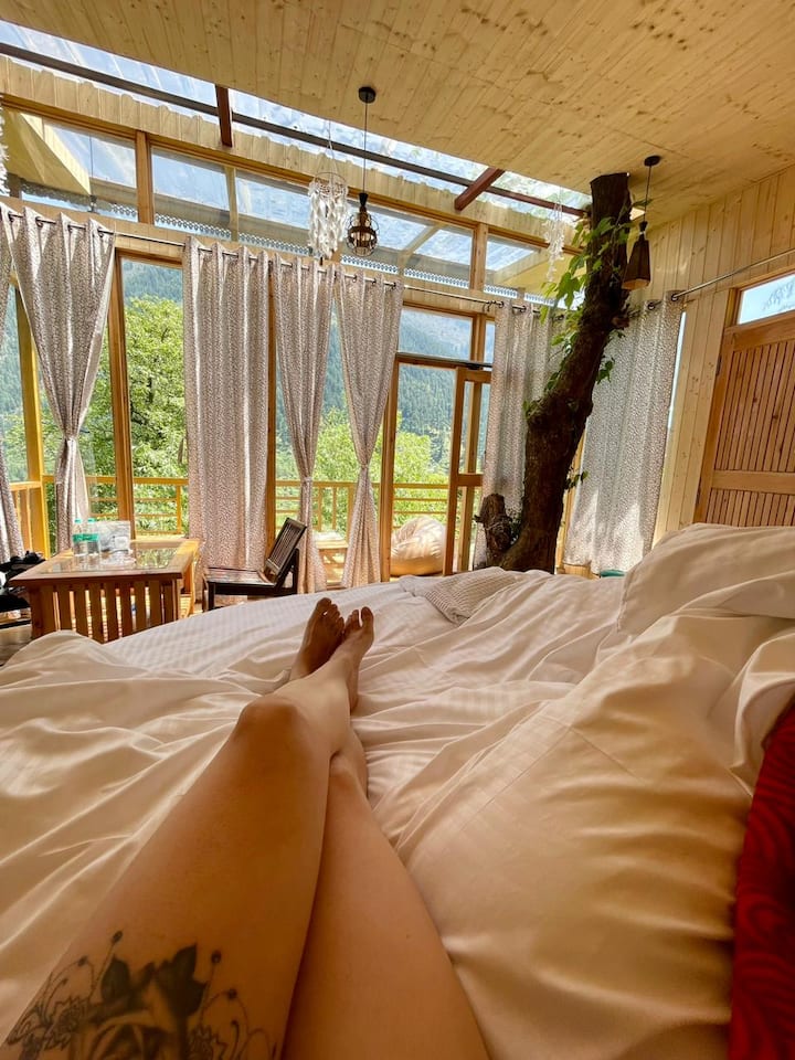 بيت الشجرة الزجاجي الخشبي من خشب الأرز في جبل هيكرز