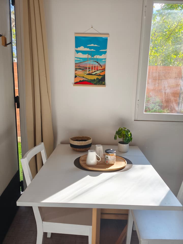 بيت مريح مع مساحة خارجية وموقف سيارات