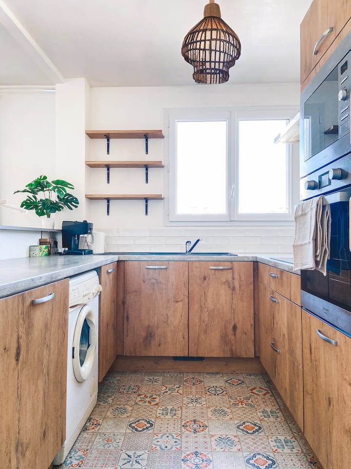 شقة جديدة مكونة من غرفتين بالقرب من المترو