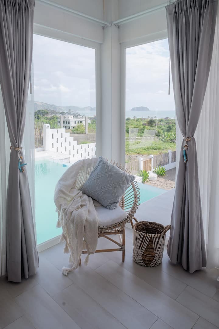 بيت مع حمام سباحة مواجه للبحر