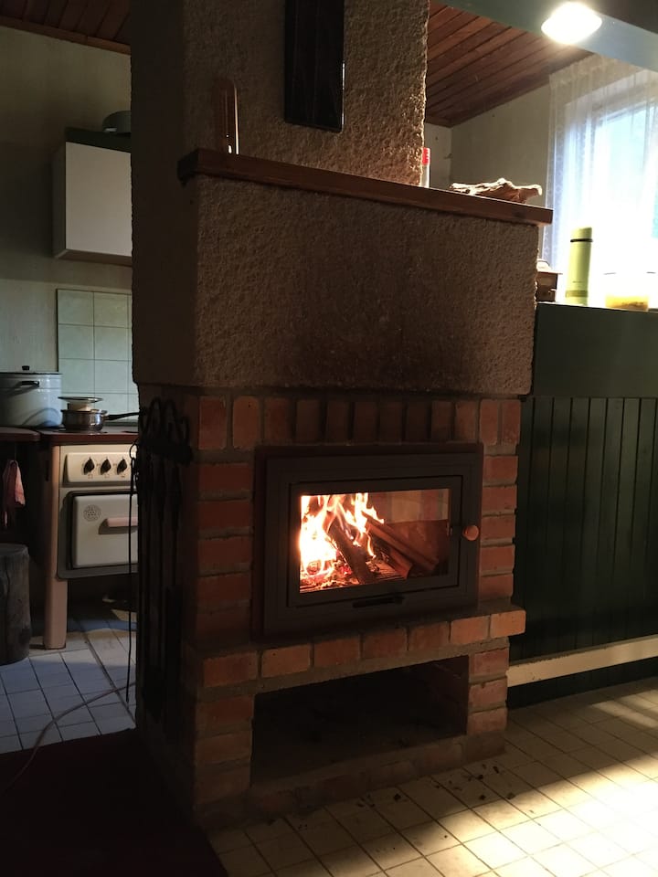 موقدٌ داخلية: على الحطب