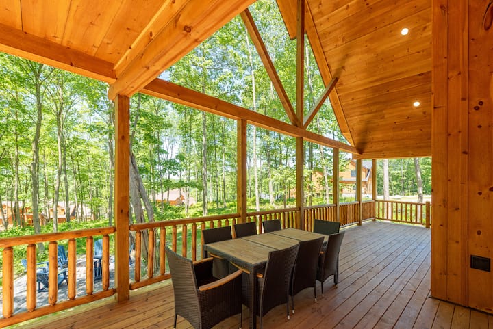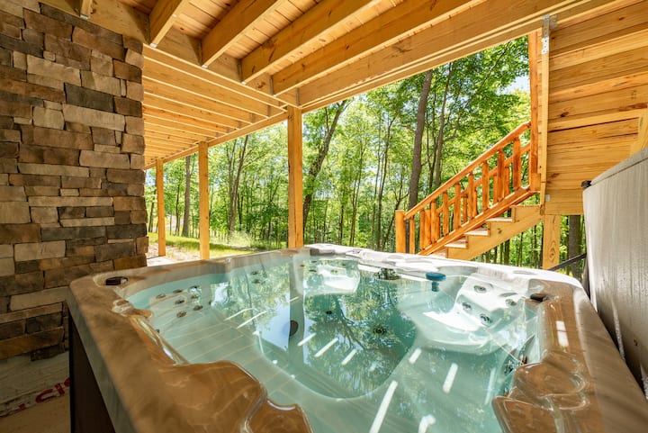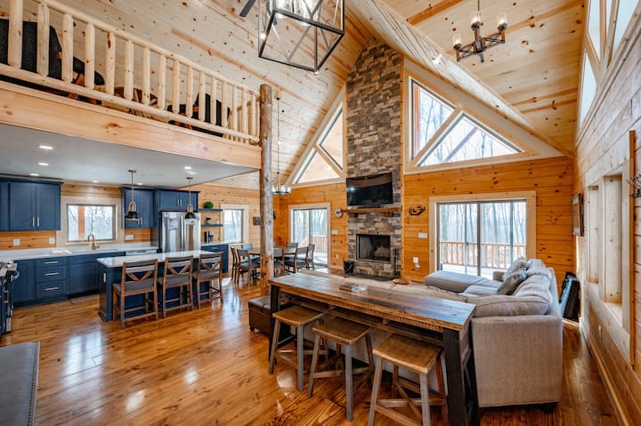 ملاذ جبلي حديث مع حوض استحمام ساخن وغرفة ألعاب