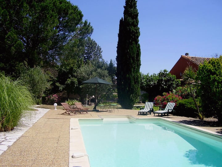 بيت جميل مع حمام سباحة وحديقة كبيرة