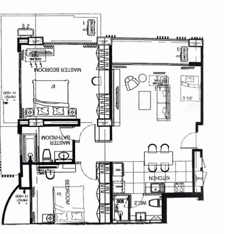 130متر مربعشقة 2B (4 أسرّة )/ BTS Phrom Phong /EmSphere/Pool
