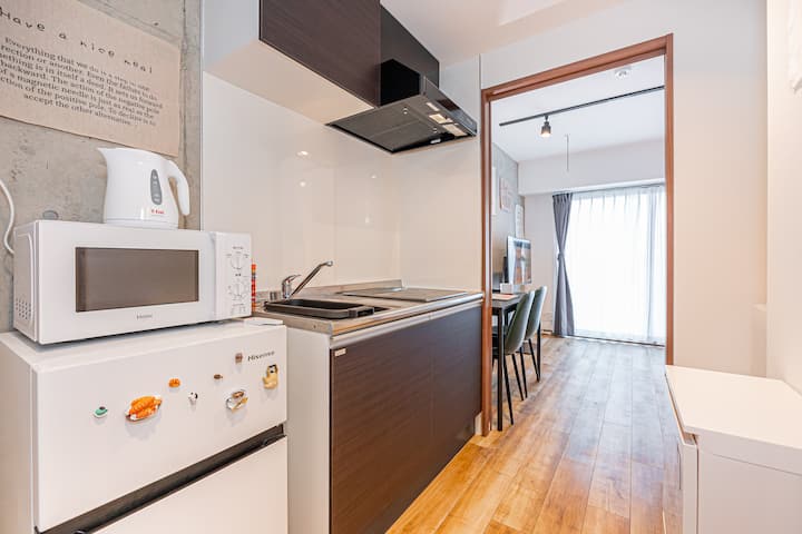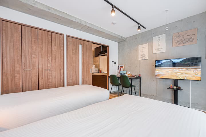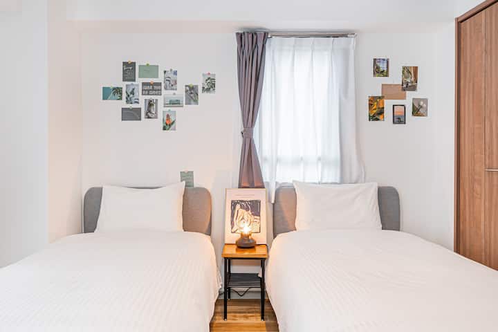 عرض لفترة محدودة على المنازل الجديدة! شقة 1K جديدة -801: مصعد / سريران مفردان / غسالة / تلفزيون / مجفف حمام / واي فاي / خط برج توبو سكاي