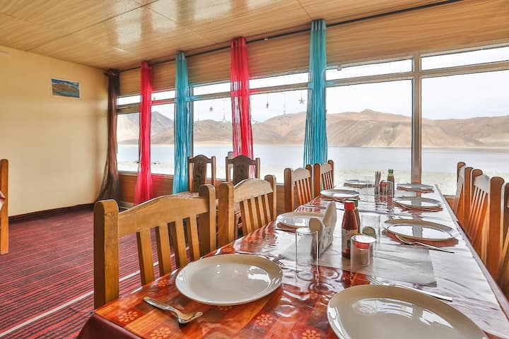 يقع هذا البيت على Pangong Tso 班公错 མཚོ་མོ་ངང་ལྷ་རིང་པོ། مباشرةً.