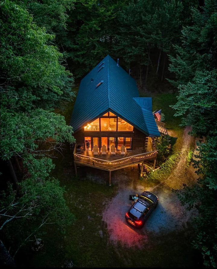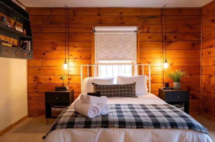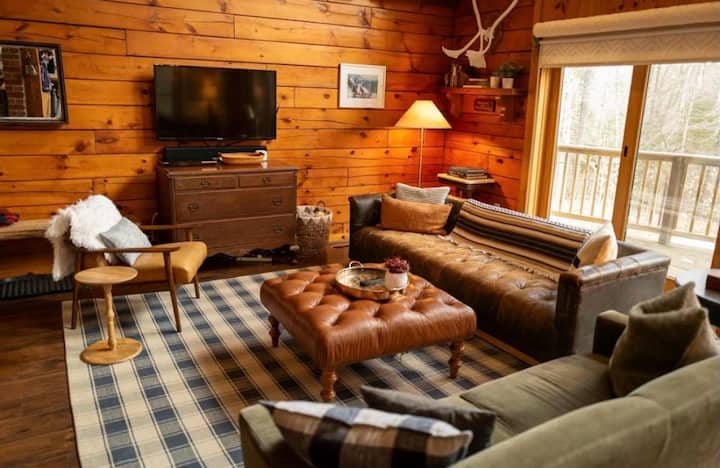 كوخ خشبي مع حوض استحمام ساخن بالقرب من ستراتون ومونت سنو