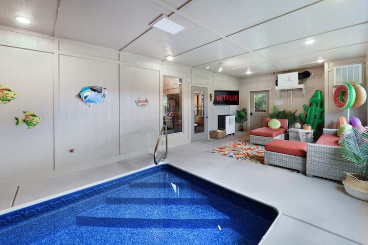 حمام سباحة داخلي خاص - متاح طوال العام ومفتوح على مدار 24 ساعة وألعاب حمام السباحة ومُدفّأ