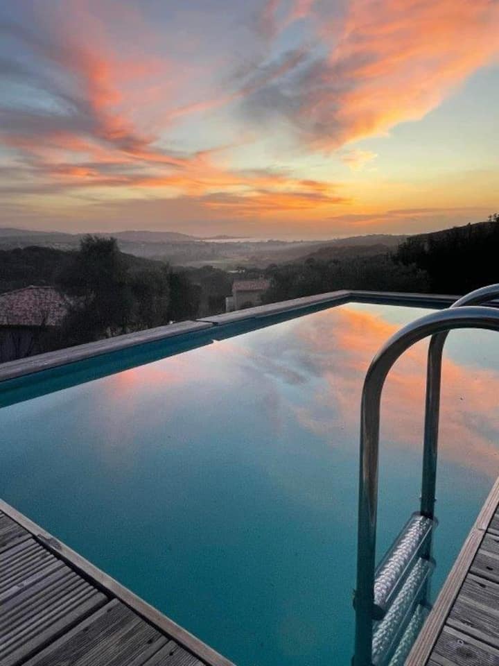 T2 في الطابق الأرضي من الفيلا، حمام سباحة بإطلالة على البحر