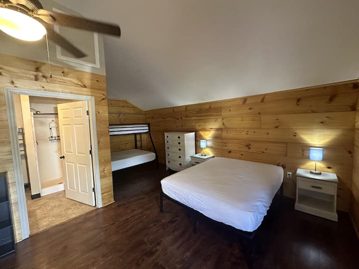 1 سرير حجم وسط و1 سرير بطابقين و1 أريكة