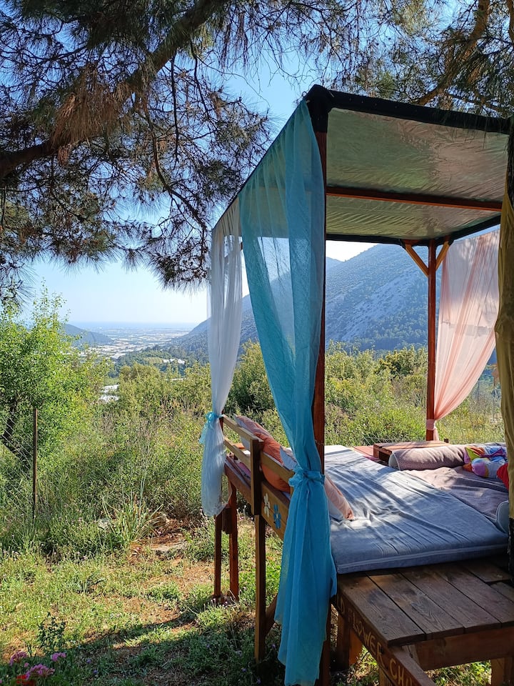 شاليه منعزل مع البحر والجبل وإطلالة على الغابة والحديقة