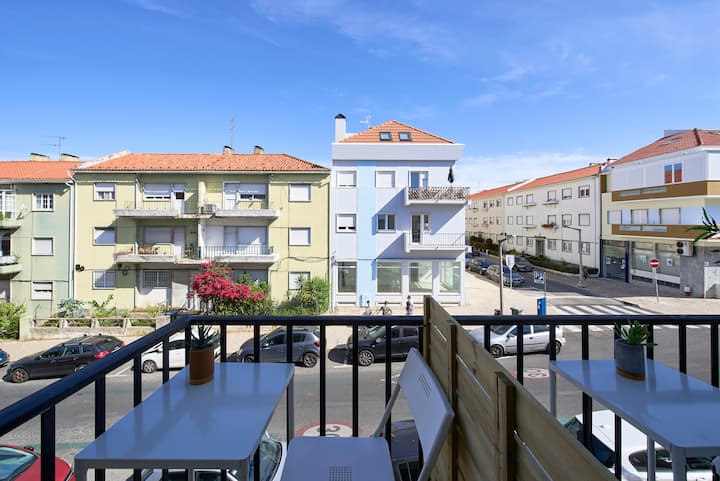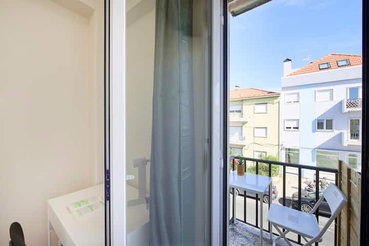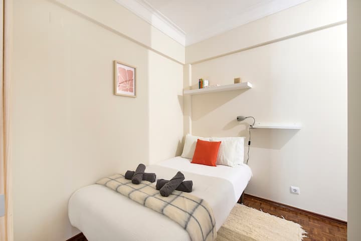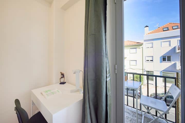 غرفة مشرقة في لشبونة مع فناء