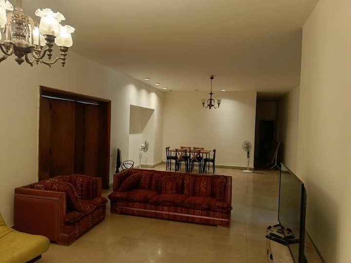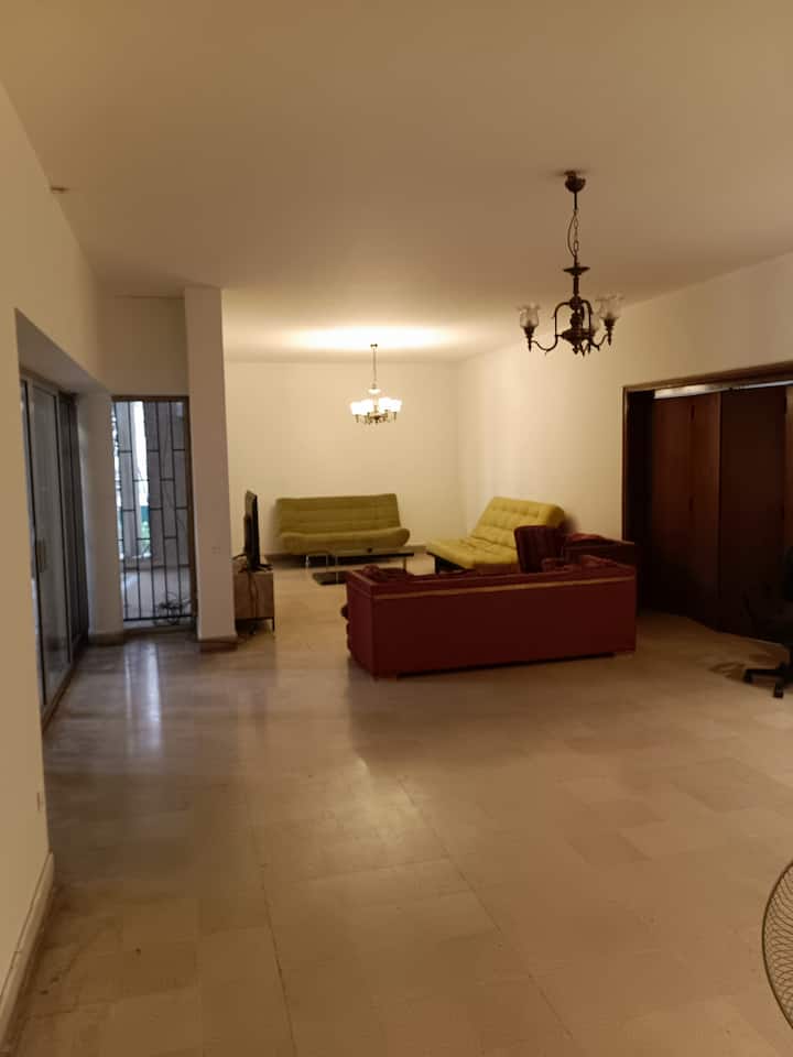 غرفة نوم رئيسية في شقة بملعب بالقرب من الجامعة الأمريكية في بيروت