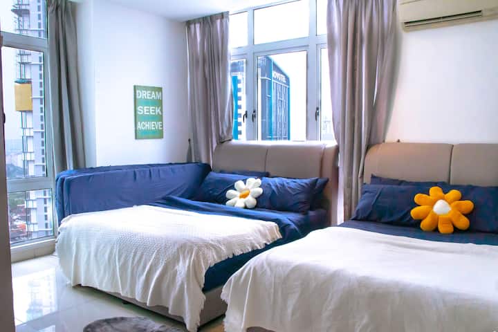 غرفتي نوم في مبنى شاهق بإطلالة على المدينة في كوالالمبور، تتسع لـ 8-11 شخصًا