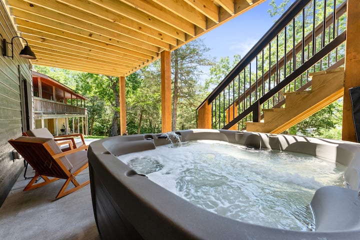 كوخ على الواجهة المائية يضم 4 غرف نوم مع حمام سباحة + حوض سباحة ورصيف قوارب