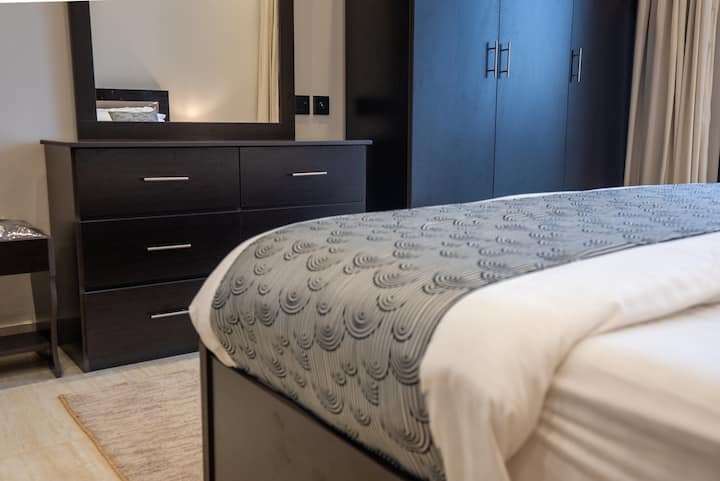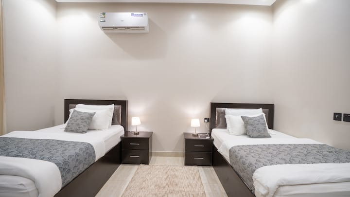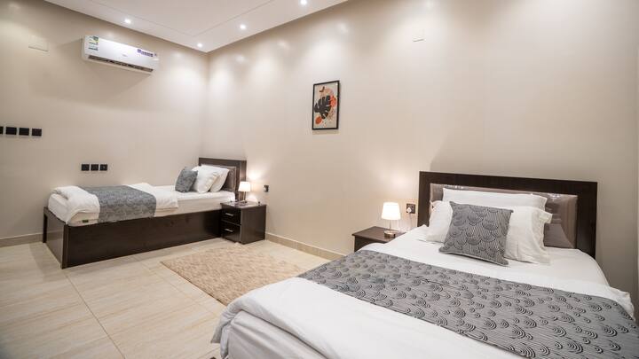 غرفتا نوم أنيقتان وواسعتان مع غرفة معيشة