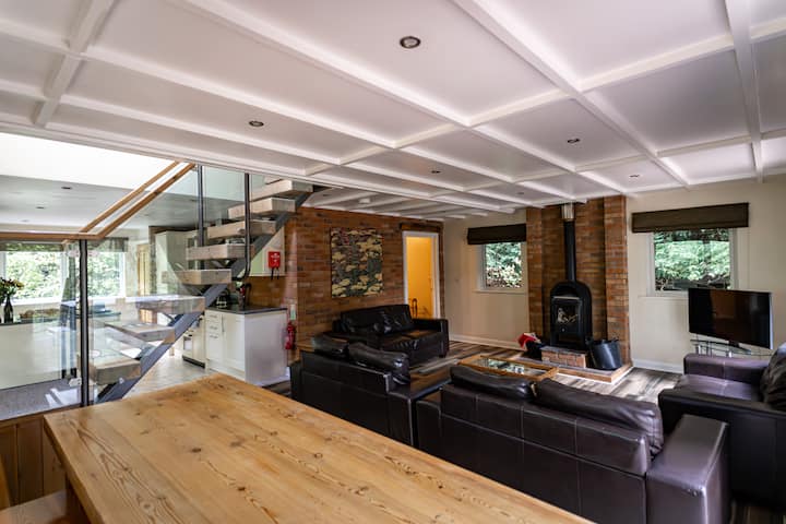 فارلي؛ كوخ في الغابة مع حوض استحمام ساخن يتسع لثمانية أشخاص