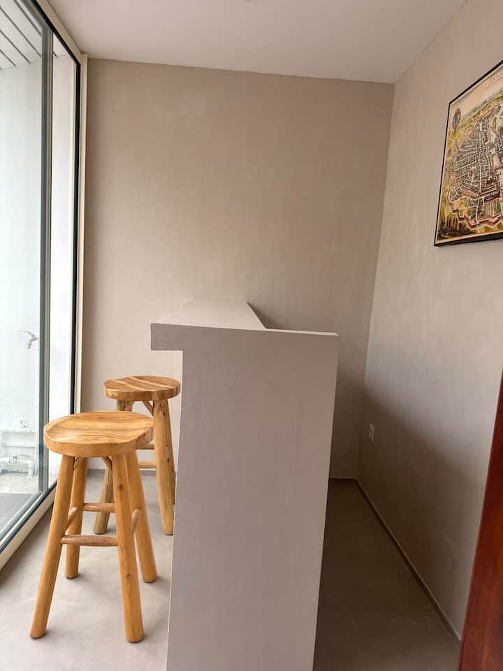 This place has a half bathroom that’s connected to your room.