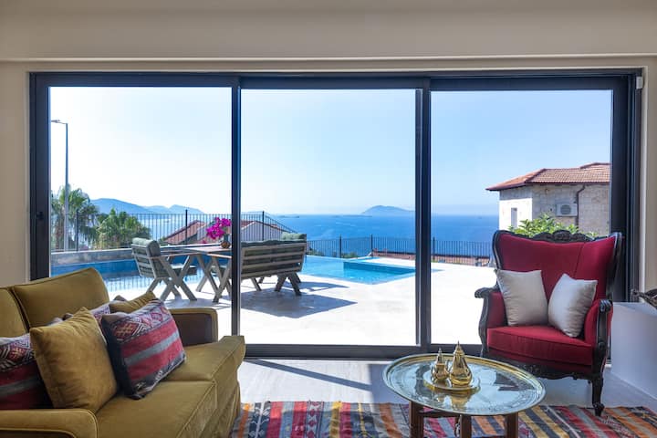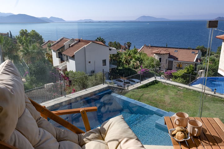 فيلا بثلاث غرف نوم مع حمام سباحة وإطلالة على البحر في كاش