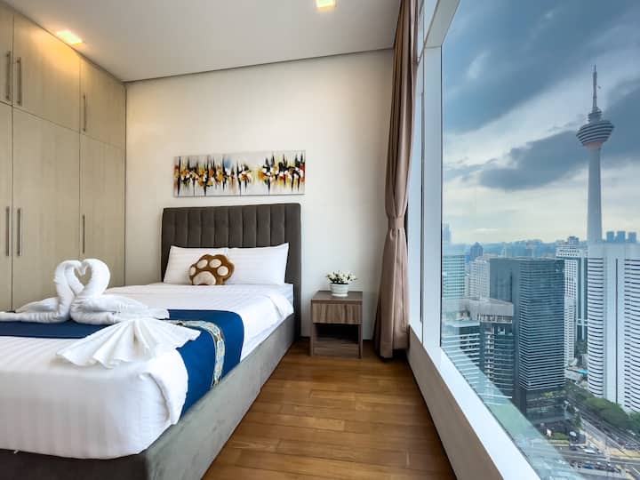 ديلوكس سوهو 3 غرف نوم مع إطلالة على برج كوالالمبور/حوض استحمام/موقف سيارات