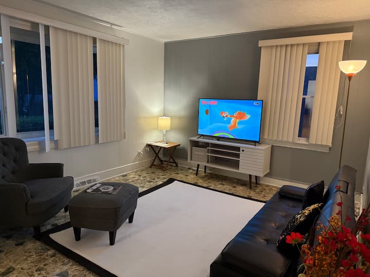 غرفة نوم رائعة بسرير كوين وغرفة معيشة خاصة.