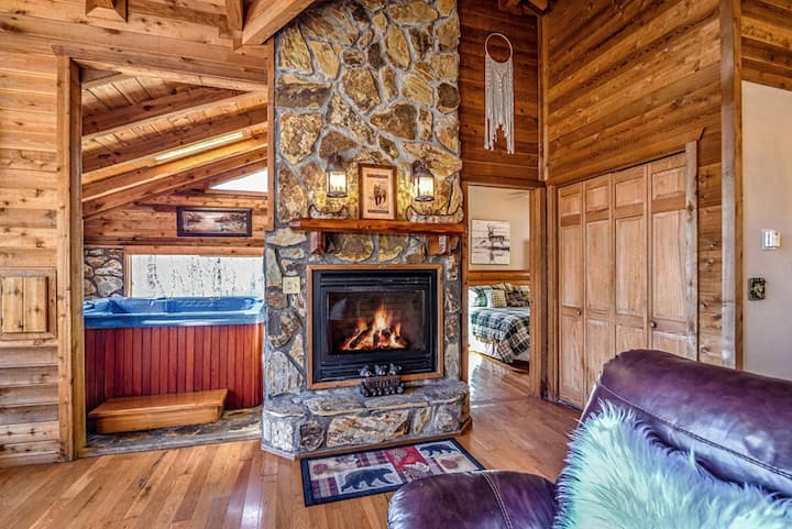 كوخ بوكاهونتاس مع إطلالة على الجبل وحوض استحمام ساخن داخلي