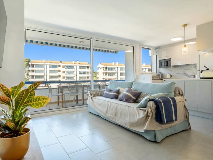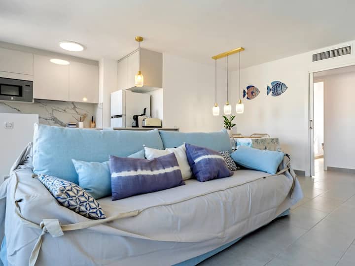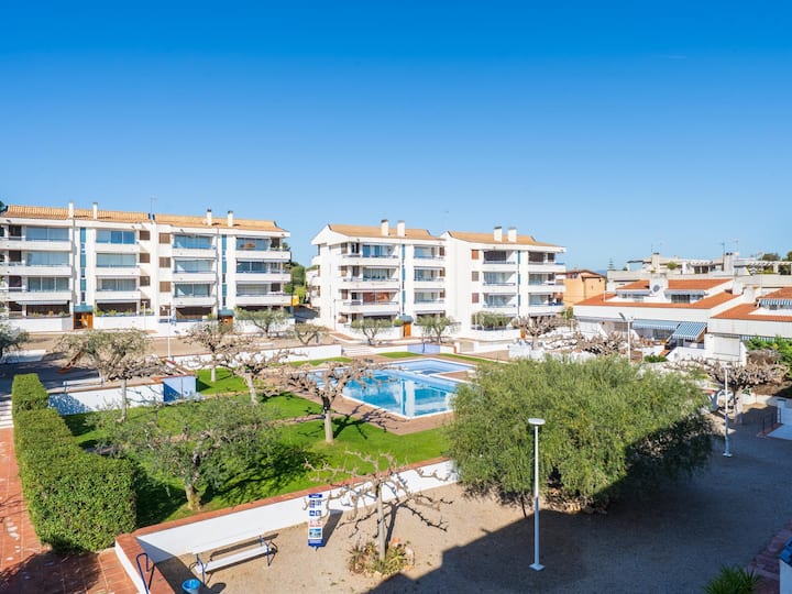شقة على بعد 250 مترًا من الشاطئ مع حمام سباحة وموقف سيارات