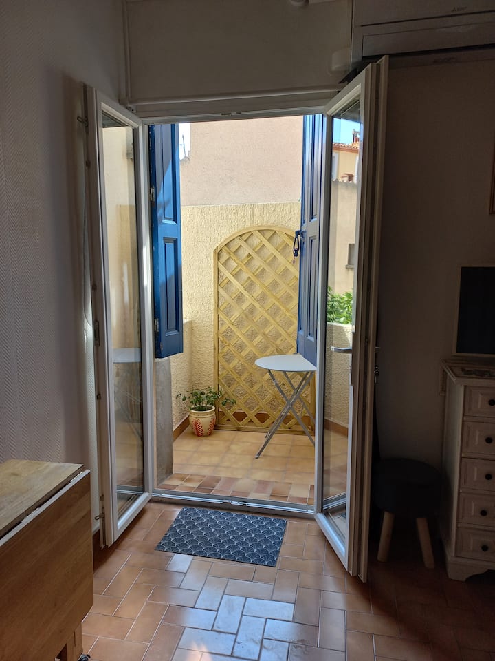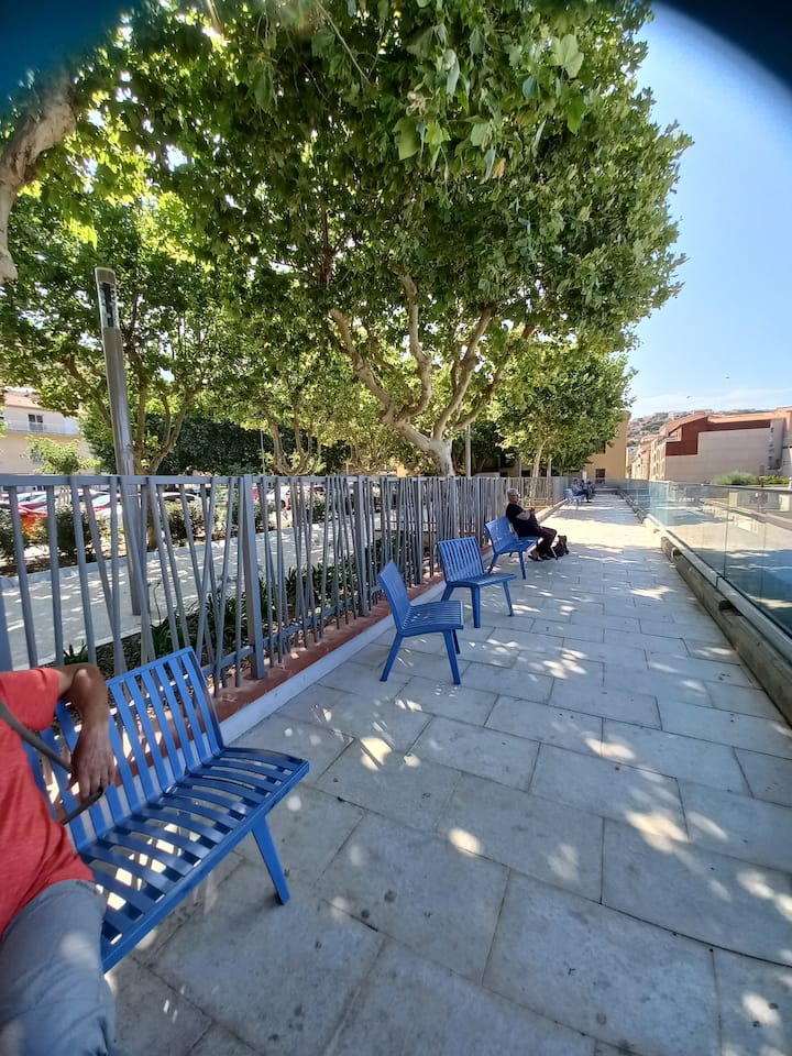 استوديو مكون من غرفتين، هادئ، الطابق الأول، على بعد 50 مترًا من الميناء