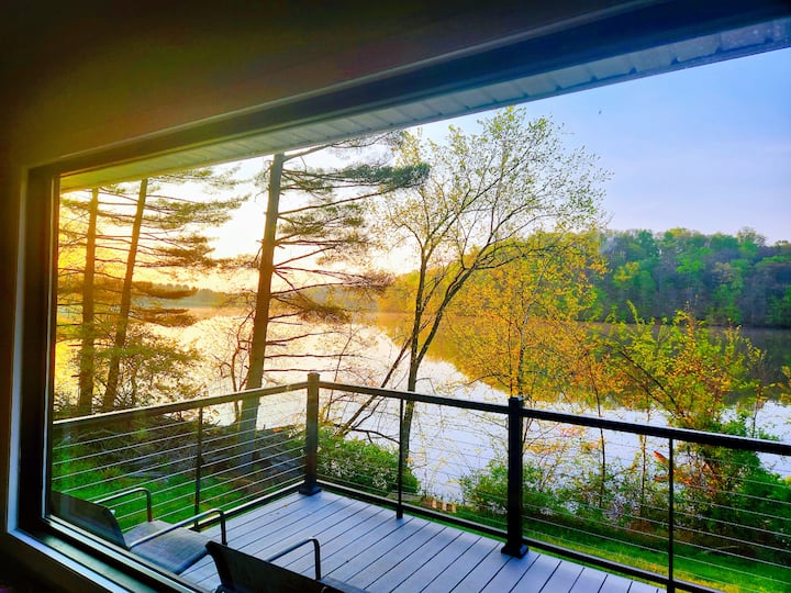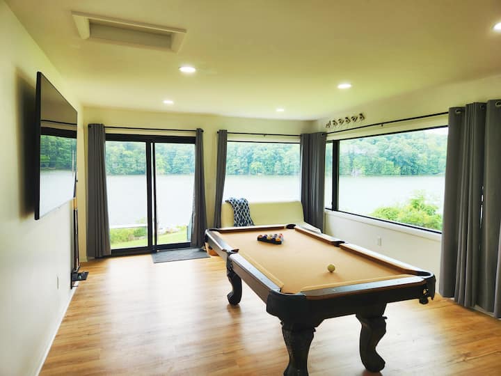 يقع هذا البيت على Lake Logan مباشرةً.