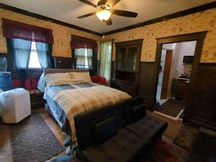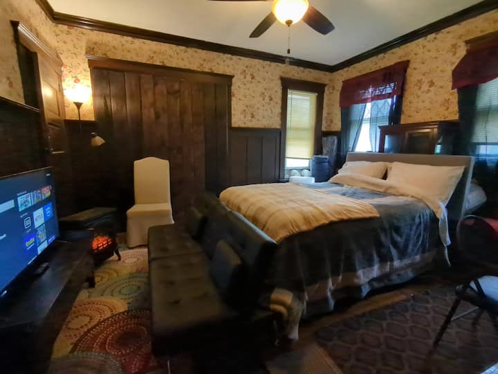 1. الأزواج في موعد. استمتع بالمشي لمسافات طويلة أو التنزه أو جولة من التنس أو الجولف في الحديقة الضخمة/ملعب الجولف القريب خلال النهار/الغسق ثم استمتع بليلة رومانسية في مسكننا. نظرًا لأن الحديقة لديها حظر تجول بعد غروب الشمس، فإن وقوف السيارات في موقف السيارات الخاص بنا سيجنبك سحب السيارة في الليل وهو ما قد يحدث إذا تركتها داخل موقف السيارات المركزي للحديقة. غرفة النوم أنيقة للغاية، وتتميز بأجواء داخلية في قصر القرن التاسع عشر تشعر بالدفء وتقرب الزوجين من بعضهما البعض، وتحتوي على منطقة تشبه الركن أمام التلفزيون لمشاهدة التلفزيون ولعب الألعاب معًا؛ وفي الحمام، حوض الاستحمام الحديث معزول وعميق للنقع، بينما يحتوي المرحاض على وظيفة البيديه.